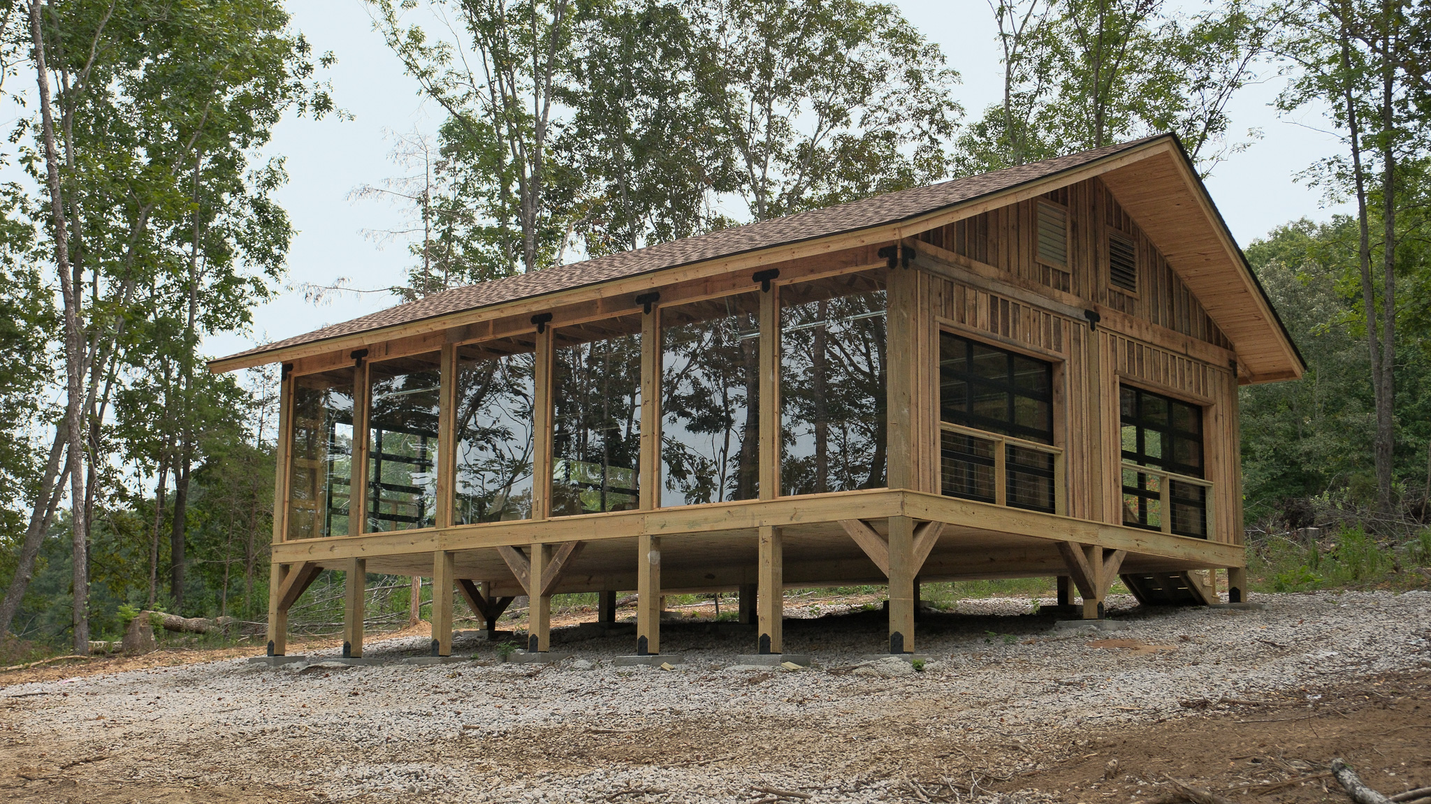 A light filled movement and creative studio used for yoga, Pilates, meditation, sound healing, dance, and ceremonies. With garage doors that open to the land and views in every direction, Chrysalis was designed to hold many forms of expression.